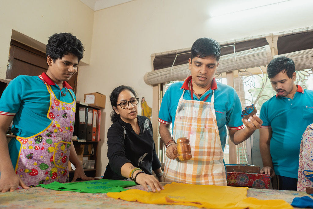 Hastha is working towards making all its products hand block printed by adults with neurological challenges.