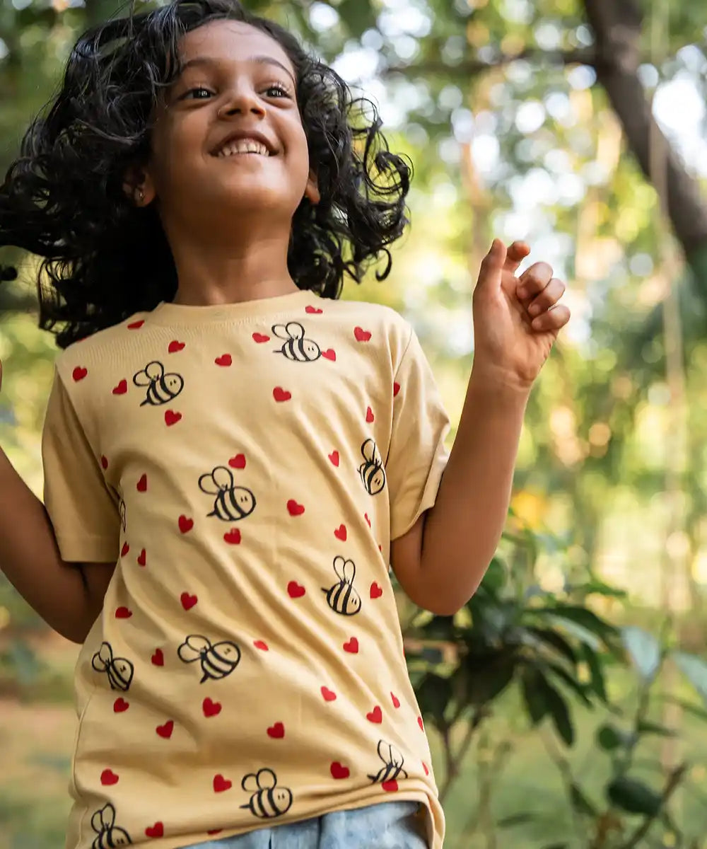 Our fun and colourful hand block printed T-shirts for kids, made with soft, comfortable cotton, are perfect for everyday play. The bright and playful designs are sure to make these a wardrobe staple. Easy to wash and maintain, they’ll be a favourite for parents too!