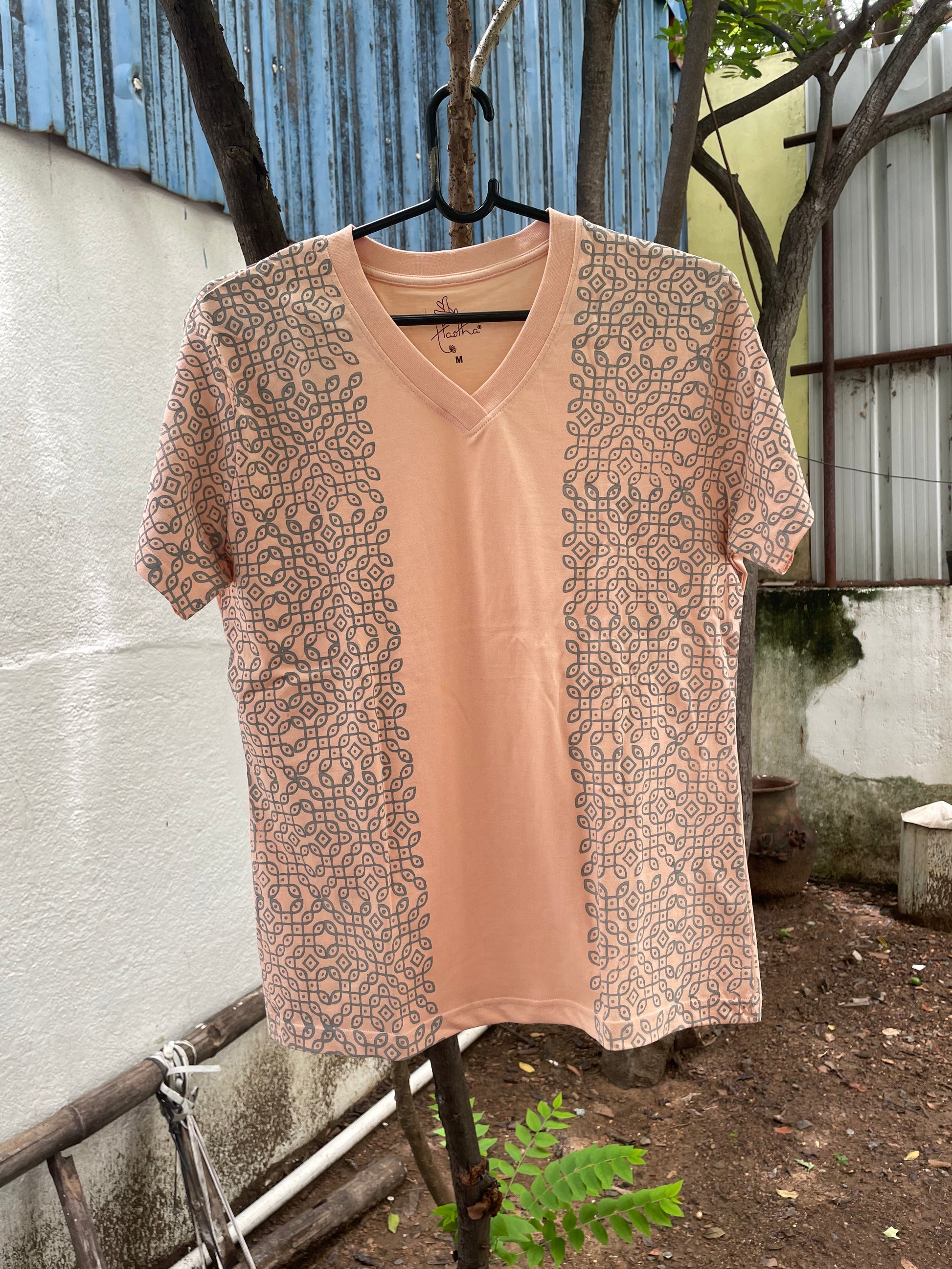 Introducing our fun and trendy hand block-printed T-shirts for women! Made from soft and comfortable 100% cotton, these T-shirts are stylish, durable and machine-washable: perfect for everyday wear. The relaxed fit and flattering neckline, coupled with unique designs add a touch of elegance to your wardrobe.