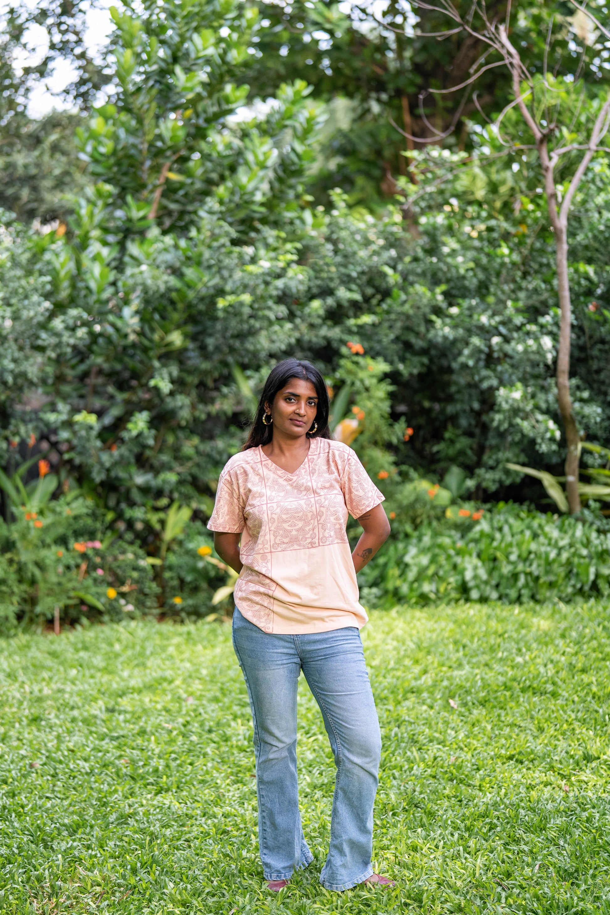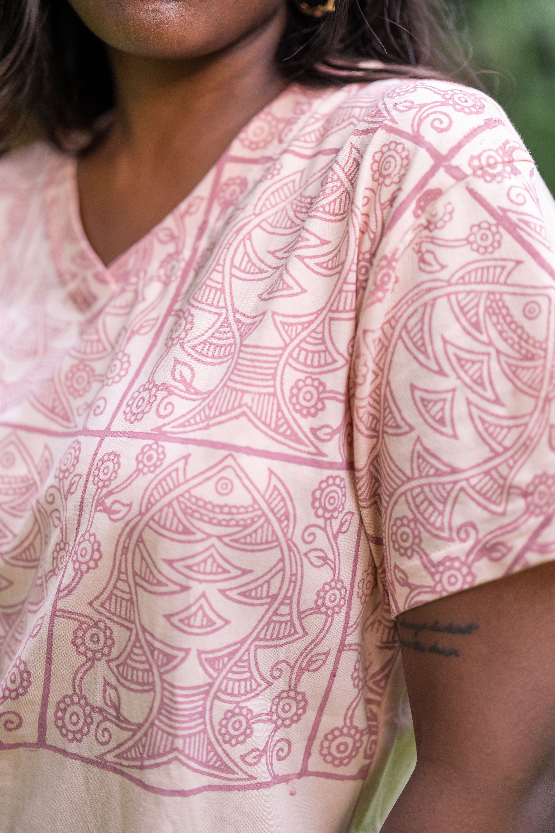 Introducing our fun and trendy hand block-printed T-shirts for women! Made from soft and comfortable 100% cotton, these t-shirts are stylish, durable and machine-washable: perfect for everyday wear. The relaxed fit and flattering neckline, coupled with unique designs, add a touch of elegance to your wardrobe.