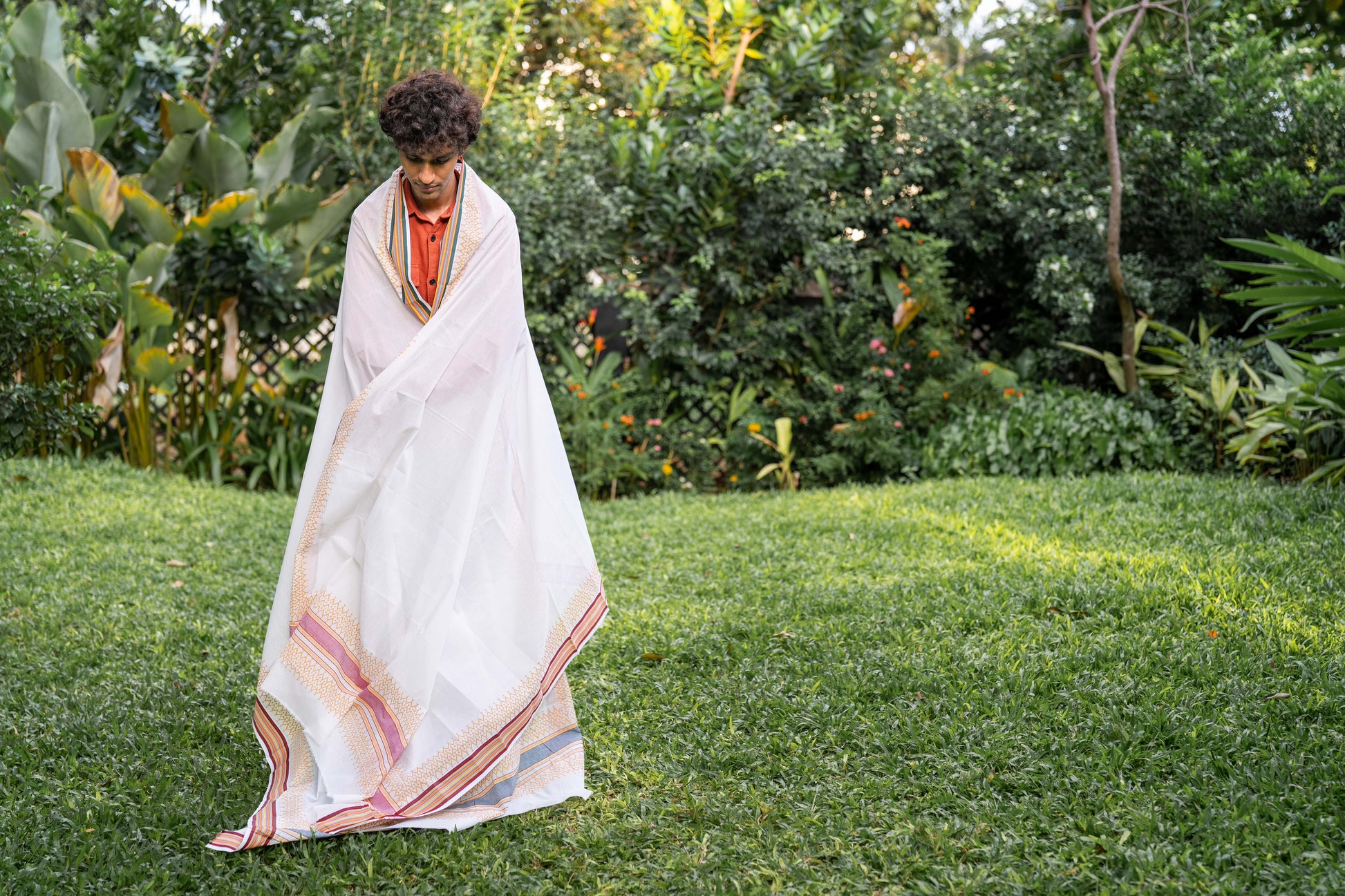 Made from high-quality cotton and hand-woven by weavers from the Vadasery Cooperative Society in Tamil Nadu, each handloom veshti tells a story of tradition and craftsmanship.