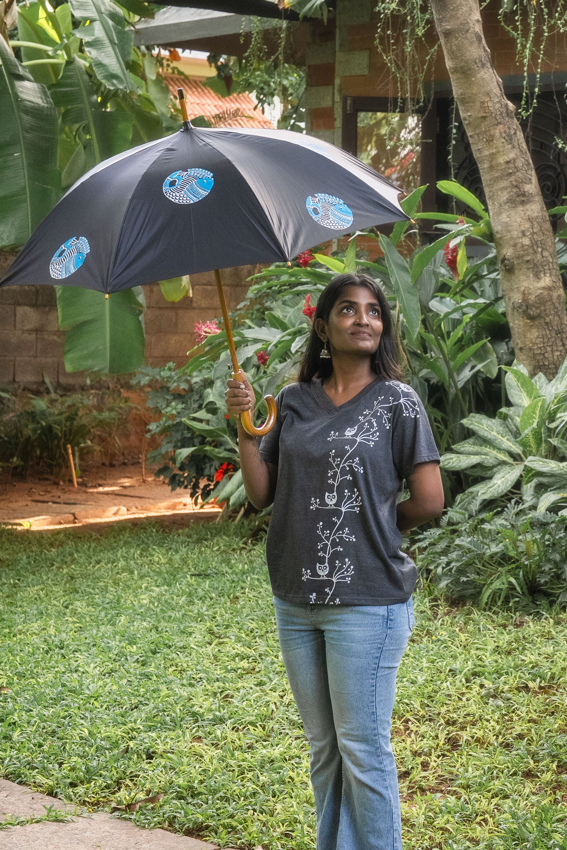 Our beautiful hand block printed umbrellas, made with high-quality materials and designed with vibrant, one-of-a-kind patterns, are a work of art. The canopy is made of waterproof fabric, ensuring you stay comfortable in any weather. These umbrellas provide excellent protection from the rain and the sun while also making a fashion statement.