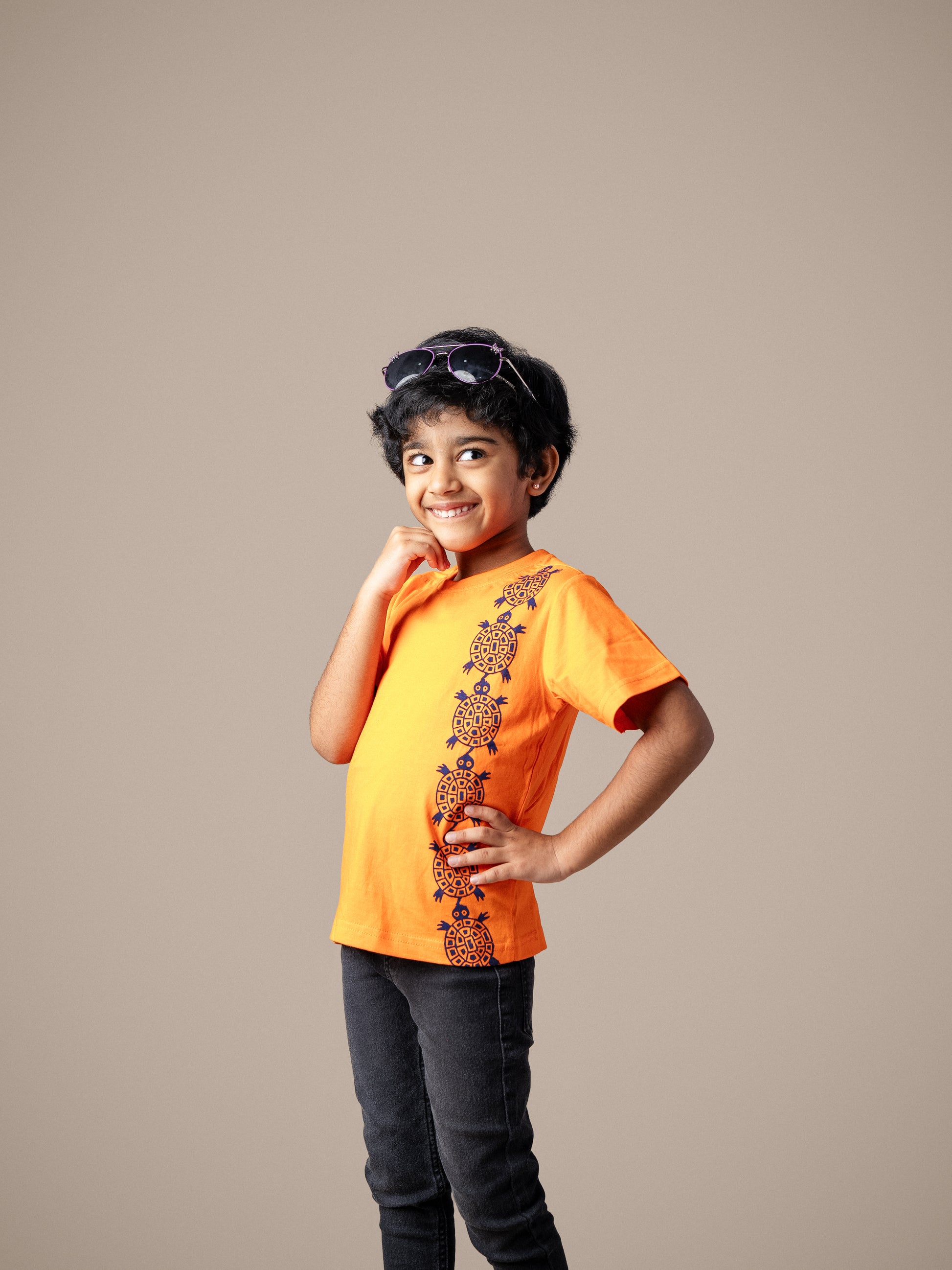 Bright, colourful, and hand block-printed with fun motifs, our kids' T-shirts are made for daily adventures.
